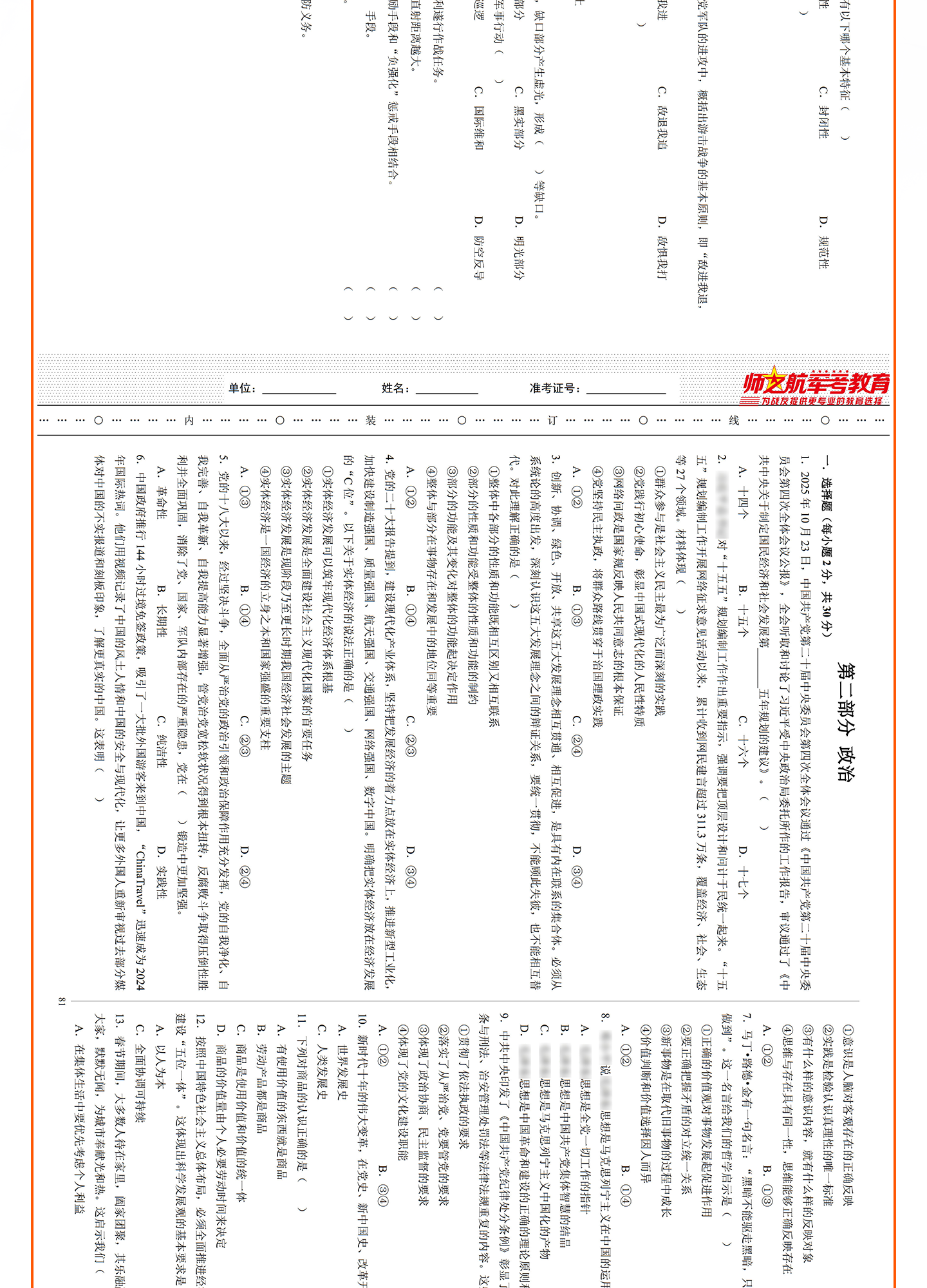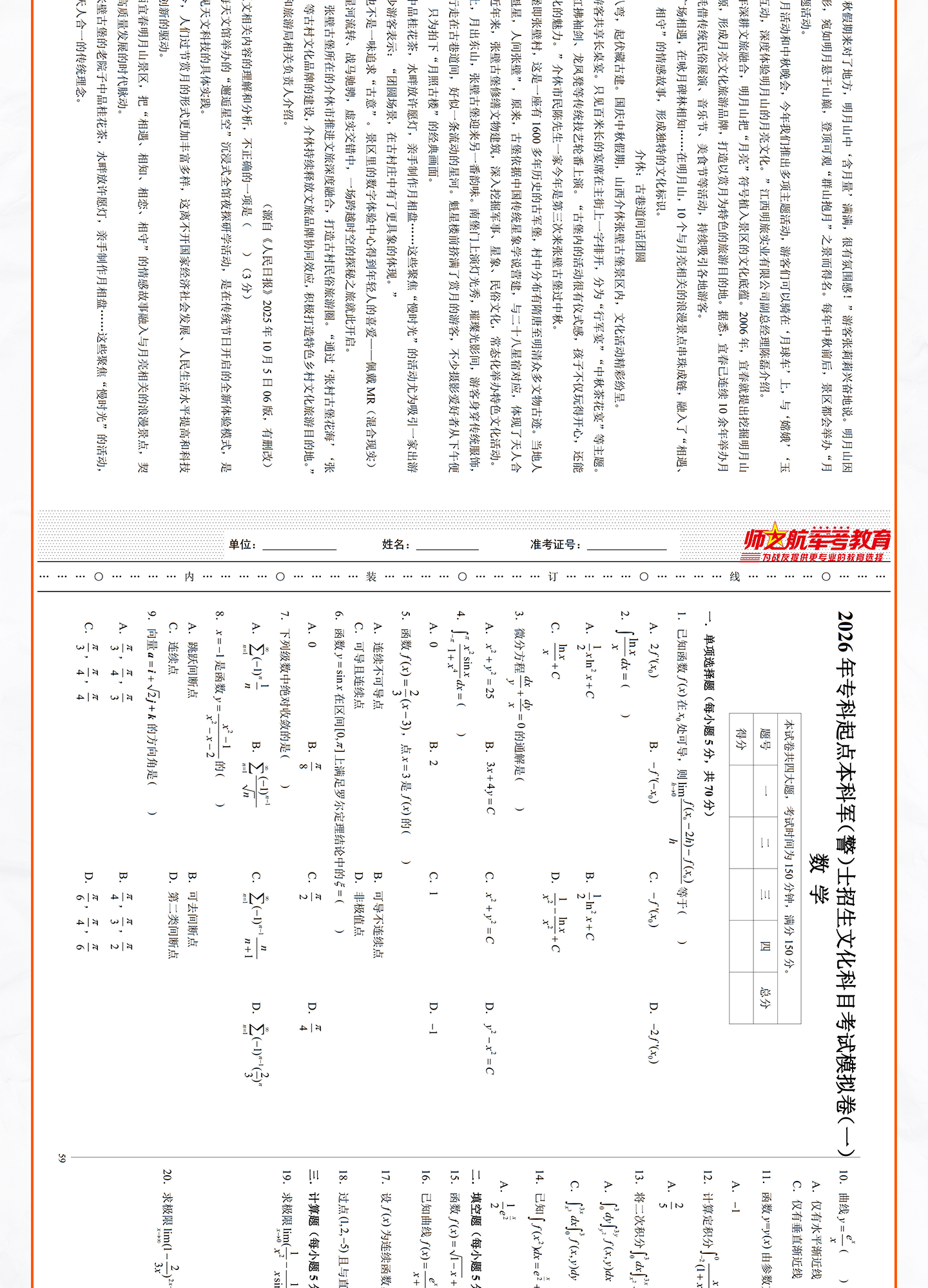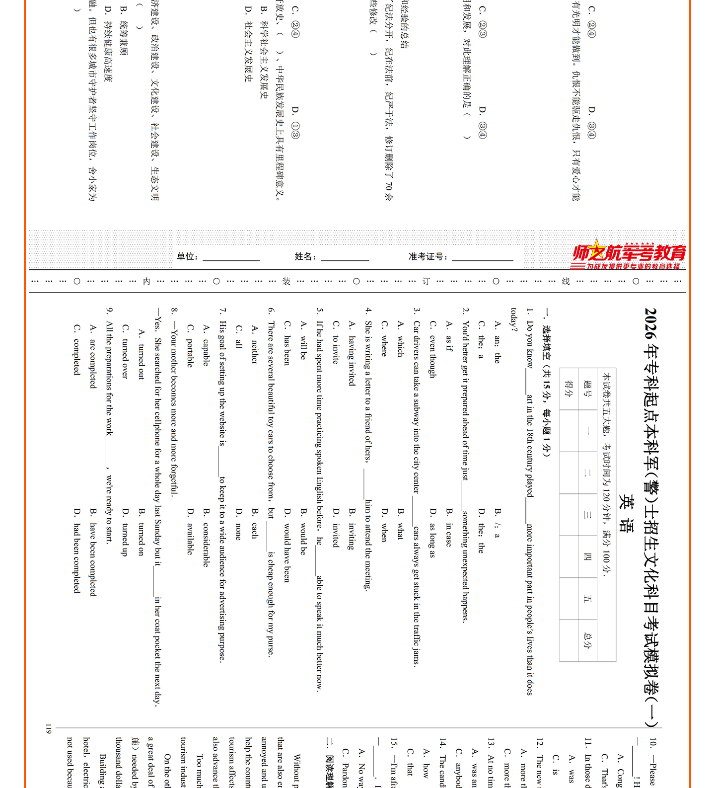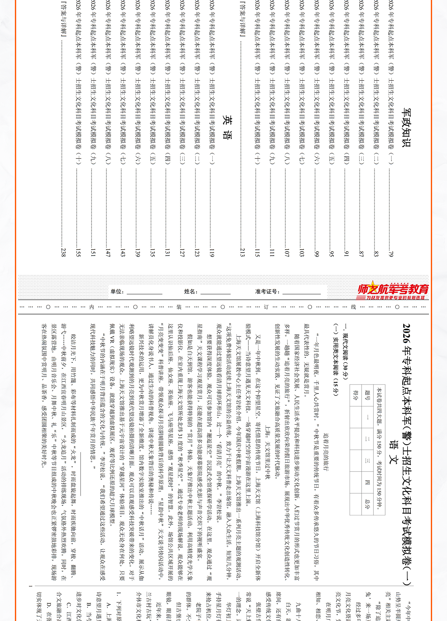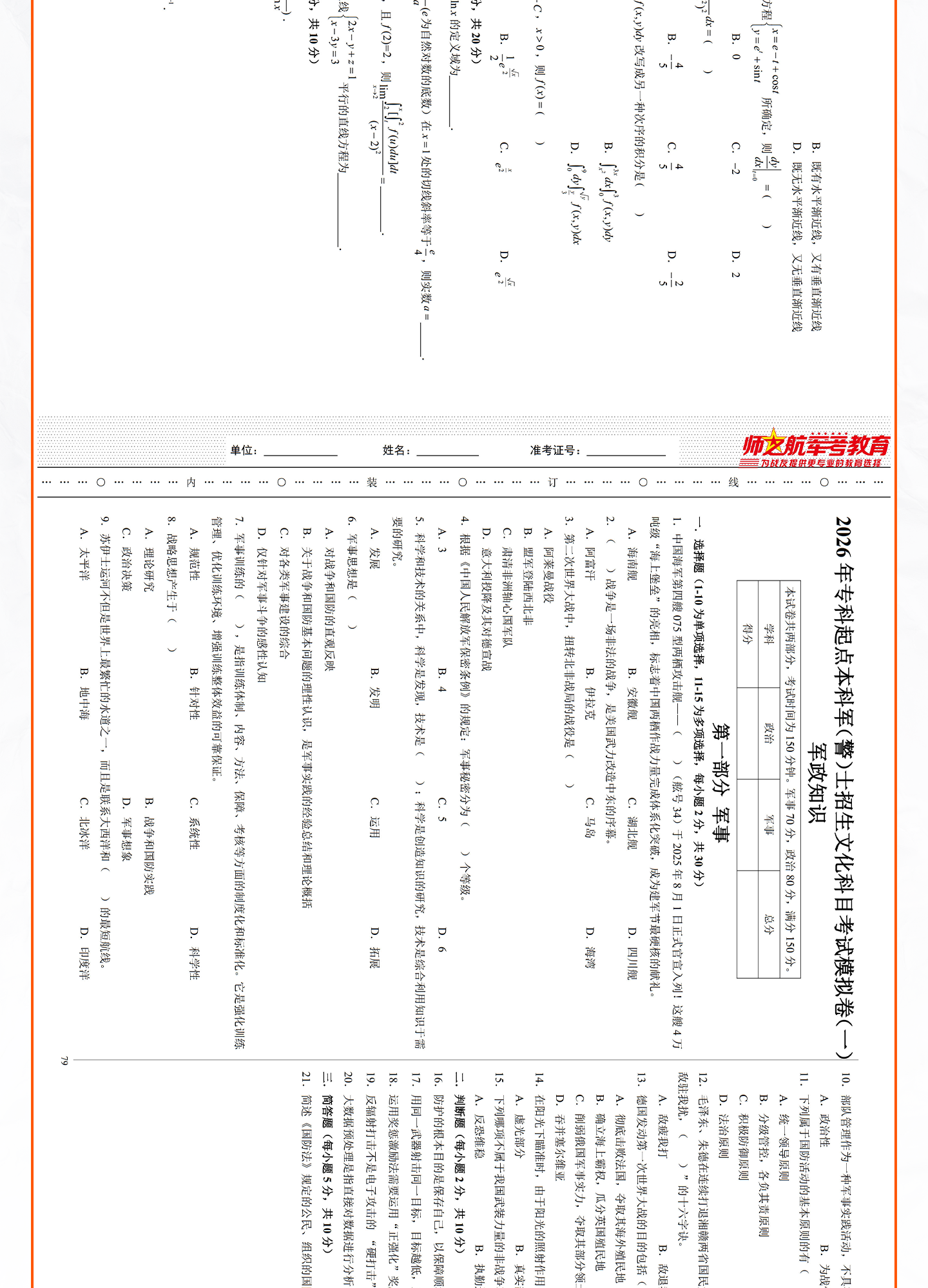 [专升本]仿真试卷+军政简答题+背诵手册